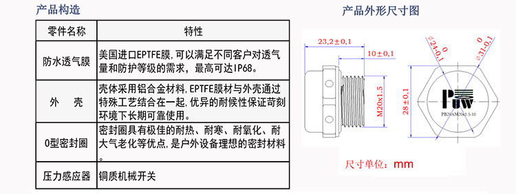 防水防爆透氣閥參數(請把鼠標移到技術參數)