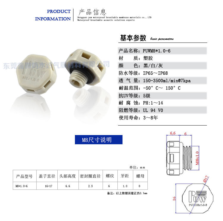 PUWM8*1.0-6參數(請把鼠標移到技術參數)
