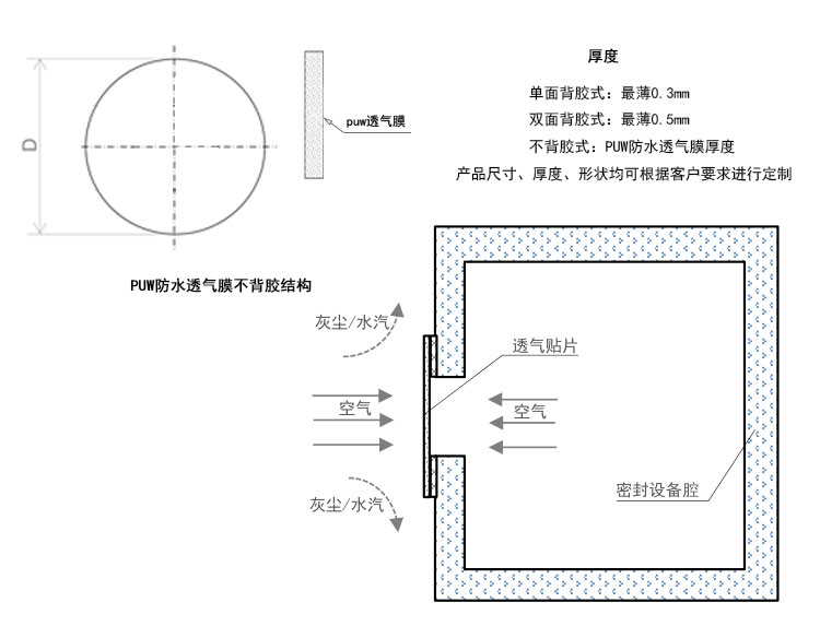 蒲微(PUW)IP66等級防水透氣膜系列EPTFE微孔膜為核心,進口原材料,通過不斷創新,開發出克一系列可以瞞足不同行業需求的防水透氣膜產品品。有不背膠防水透氣膜、背膠式防水透氣膜、聲學防水透氣膜等。為客提供專業的防水透氣解決方案。