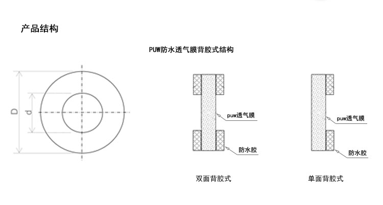 背膠式防水透氣膜是由EPTFE薄膜與雙面膠(采用美國3M公司)貼合而成,背膠式產品薄而輕巧,易于安裝,具有性能穩定,使用時間長,防水透氣性能高等。我們既能提供標準尺寸,也能按照客戶需求制作。